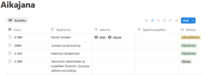 Notionin vahvuus on sen muokattavuus. Se taipuu juuri siihen muotoon kuin sinä tarvitset – eikä siihen, mitä sovellus haluaa sinun tarvitsevan. Tämän postauksen kuvat ovat ruutukaappauksia omasta kokonaisuudestani. Samalla tämä on sen heikkous: jos odotat valmiita rakenteita, voi aloitus tuntua hankalalta. Notion ei ole käyttövalmis paketti ellei sitten mallipohjilla. Se on työkalu, jolla rakennat oman järjestelmäsi. Mutta kun sen oppii, siitä ei halua enää luopua.